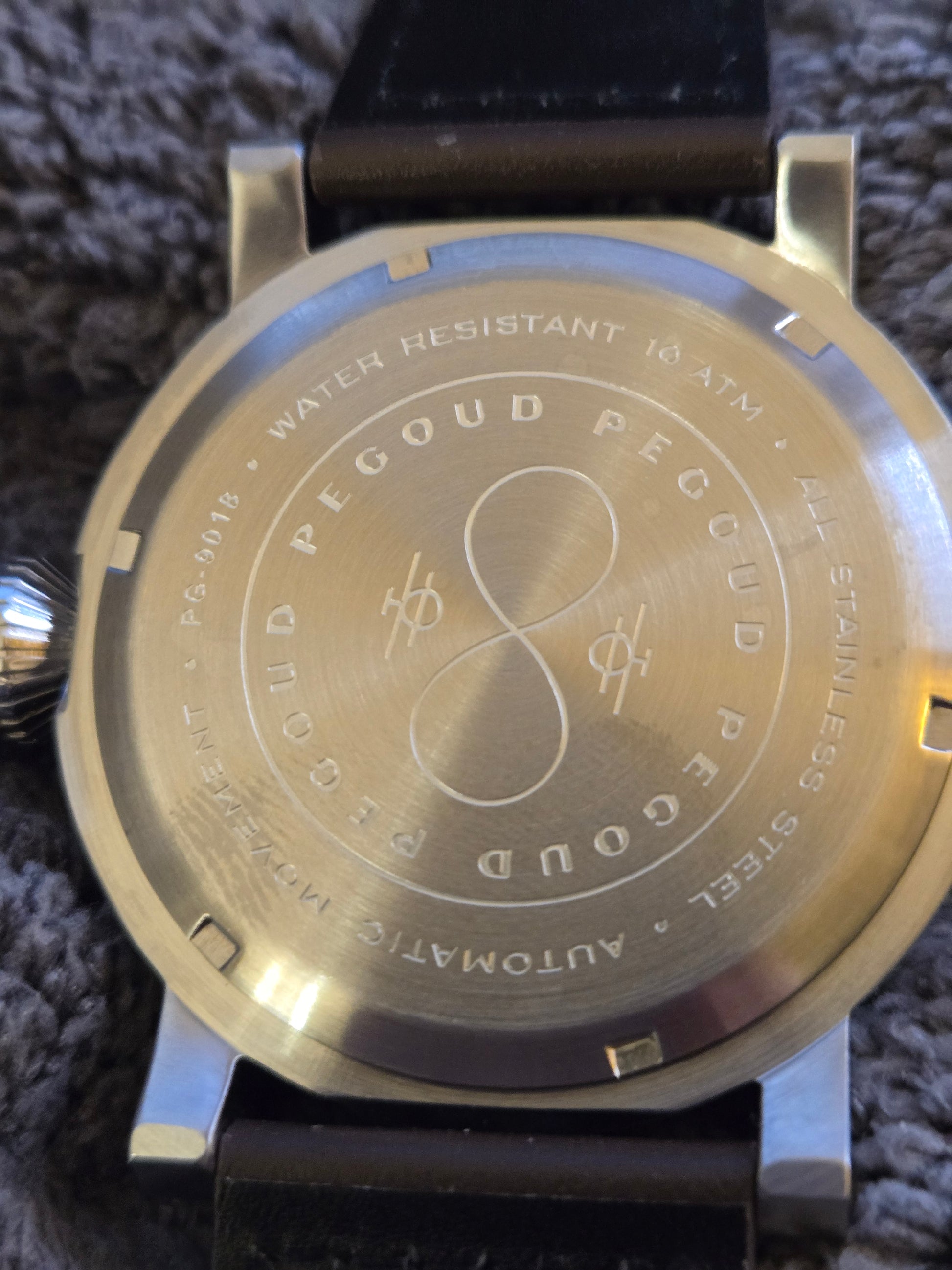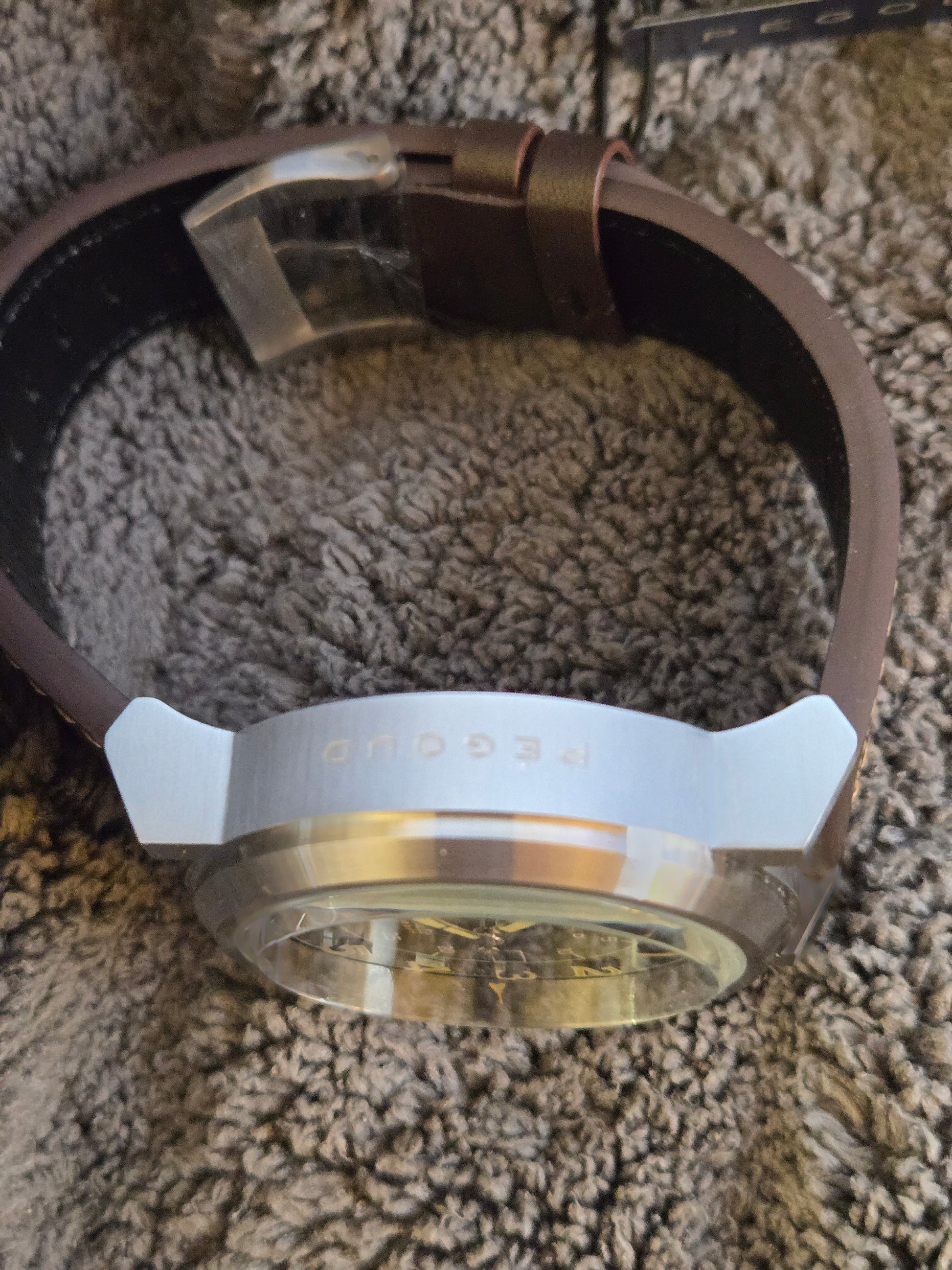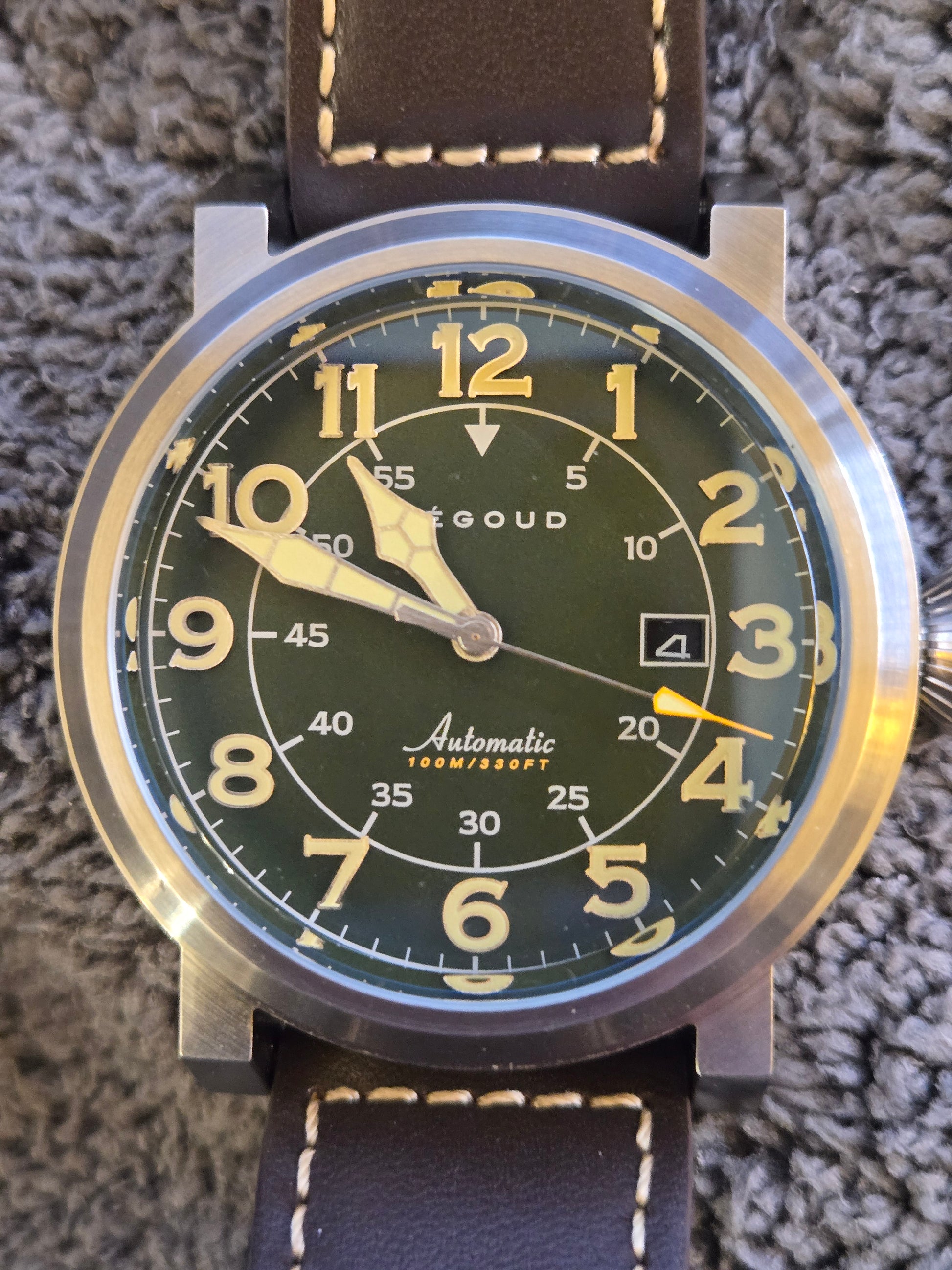 Pegoud 44mm pilot automatic movement with brown leather strap, box and papers.